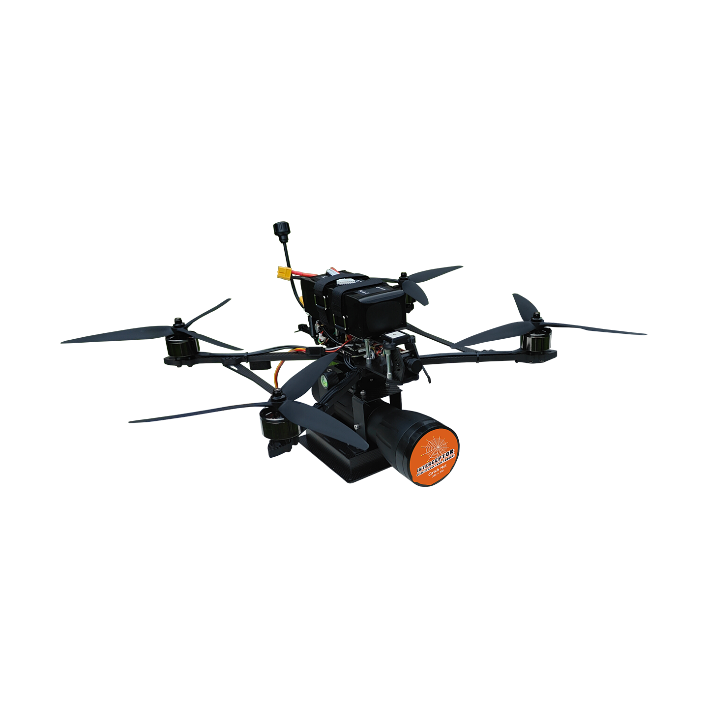 这款穿越机集成的插头设计,让飞机整机更美观简洁;提供超长续航能力,搭载摄像头。无遮挡的飞行视野,让您尽享鹰眼般的广阔,同时可搭载网捕器,既可用于公安机关对犯罪嫌疑人的控制抓捕,又能用于网捕小型飞行器,甚至在动物园或野外环境中,用于控制抓捕可能袭击人类的凶猛动物。